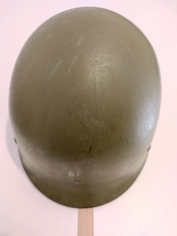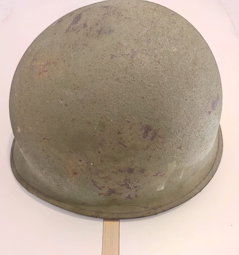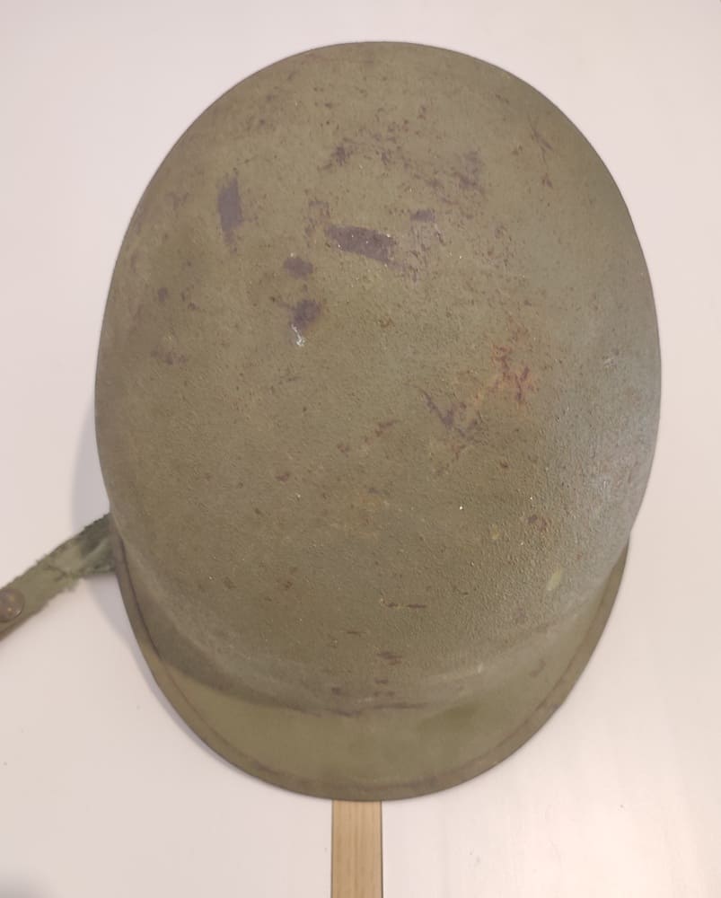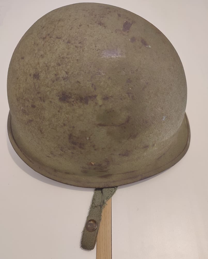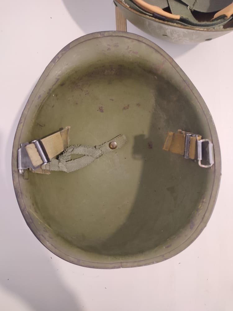 US M1 helmet with swivel bales and rear seam rim, complete with its liner.